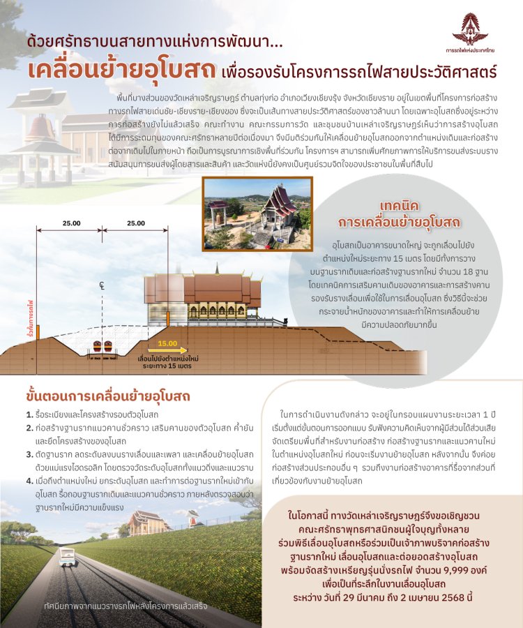 ด้วยศรัทธาบนสายทางแห่งการพัฒนา...เคลื่อนย้ายอุโบสถ เพื่อรองรับโครงการรถไฟสายประวัติศาสตร์