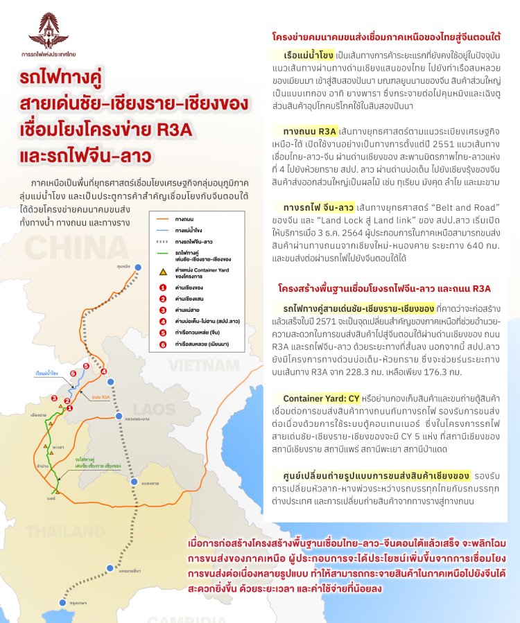 รถไฟทางคู่สายเด่นชัย-เชียงราย-เชียงของ เชื่อมโยงโครงข่าย R3A และรถไฟจีน-ลาว