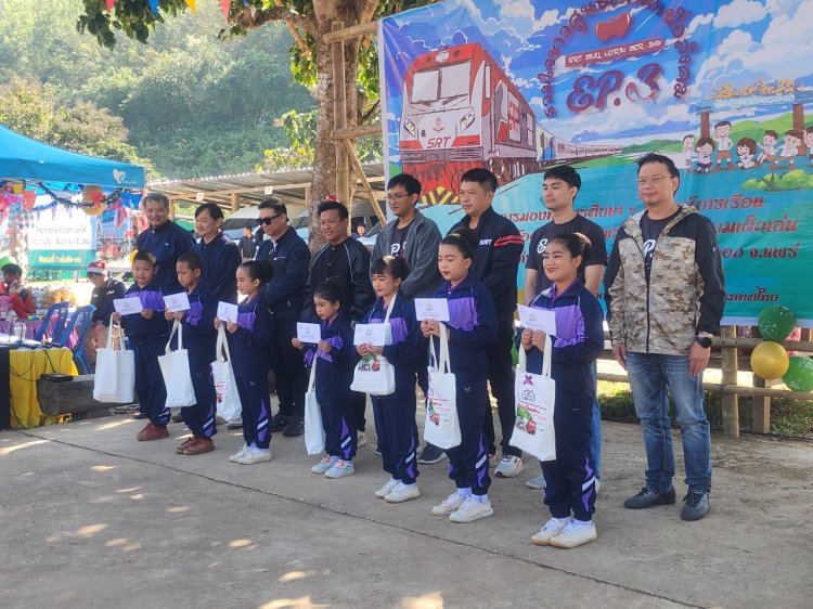 นายจเร รุ่งฐานีย รองผู้ว่าการกลุ่มโครงสร้างพื้นฐาน การรถไฟแห่งประเทศไทย พร้อมด้วยคณะผู้บริหาร พนักงานศูนย์บำรุงทางภาคเหนือ ฝ่ายการช่างโยธา กว่าร้อยชีวิต รวมพลังน้ำใจทำประโยชน์สู่สังคม ผ่านกิจกรรม “รวมใจชาวศูนย์เหนือเพื่อสังคม EP.3” มอบทุนการศึกษา ปรับปรุงห้องสมุดเฉลิมพระเกียรติและสนามเด็กเล่น โรงเรียนบ้านท่าวะ (ราษฎร์บำรุง) ตำบลสะเอียบ อำเภอสอง จังหวัดแพร่ ในการนี้ นายอรรถพล เก่าประเสริฐ รองวิศวกรใหญ่ฝ่ายโครงการพิเศษและก่อสร้าง พร้อมวิศวกรโครงการสายเหนือครบทีม นำขบวน “ปู๊น...ปู๊น หมู่เฮา” โครงการก่อสร้างทางรถไฟสายเด่นชัย-เชียงราย-เชียงของ ร่วมออกบูธนิทรรศการประชาสัมพันธ์โครงการ เล่นเกม แจกของที่ระลึกให้แก่น้อง ๆ ได้ความรู้และสนุกสนานกันถ้วนหน้า...ปู๊น...ปู๊น
