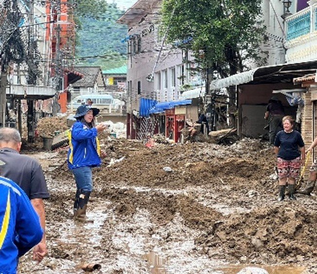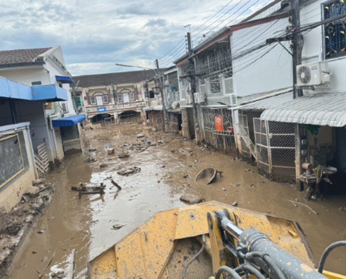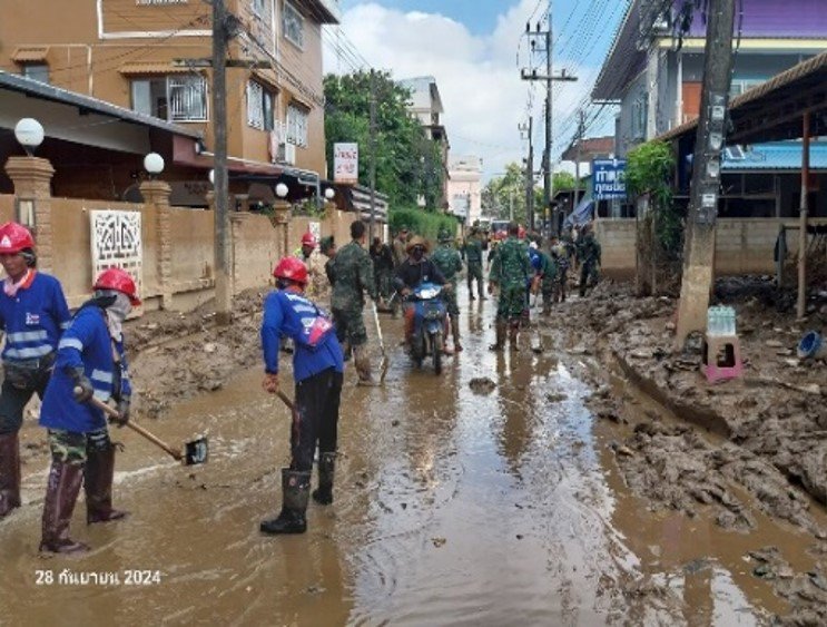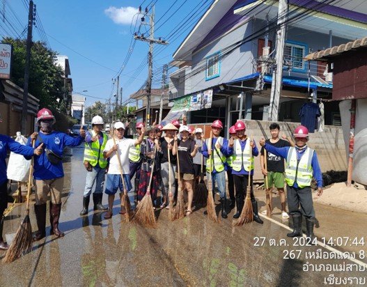 โครงการก่อสร้างทางรถไฟสายเด่นชัย-เชียงราย-เชียงของ โดยกิจการร่วมค้าซีเคเอสที-ดีซี 3 ร่วมกับเทศบาลตำบลแม่สาย ร่วมฟื้นฟูพื้นที่ในชุมชนเหมืองแดง อำเภอแม่สาย จังหวัดเชียงราย จำนวน 160 ครัวเรือน โดยทำความสะอาดพื้นที่หลังน้ำลดในบริเวณหลังโรงแรมวังทอง ถนนเหมืองแดงซอย 6 ถนนเหมืองแดงซอย 8 และซอยแมนชั่น พร้อมสนับสนุนผ้าห่ม และของใช้ที่จำเป็น...“ช่วยล้านนา...ด้วยล้านใจ”