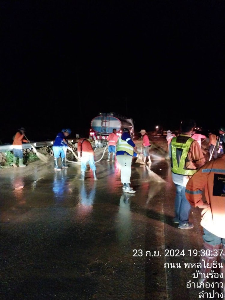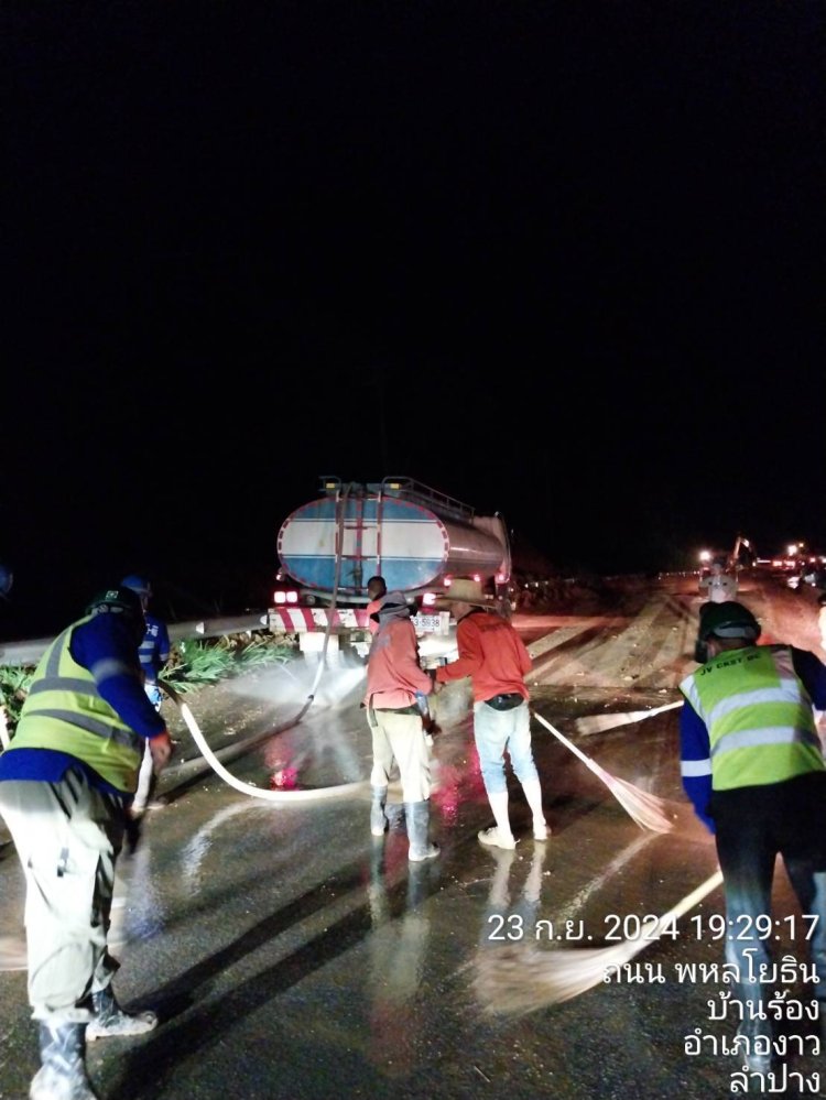 ทั้งนี้ไม่ได้เกิดจากการก่อสร้างถนนลำเลียงถมคลองแม่ตามข่าว เพราะถนนลำเลียงไม่ได้ออกแบบเป็นฝายกั้นน้ำ มีการวางท่อระบายน้ำขนาดเส้นผ่าศูนย์กลาง 1.20 เมตร จำนวน8ท่อ ซึ่งเพียงพอต่อการระบายน้ำในสภาวะปกติ โดยก่อนวันเกิดเหตุก็ไม่มีน้ำขังด้านเหนือน้ำในลักษณะอ่างหรือฝ่ายเก็บน้ำแต่อย่างใค แต่เนื่องจากมวลน้ำมีปริมาณมาก ไหลเชี่ยวแรง ทำให้ถนนลำเลียงถูกกัดเซาะจนขาดอย่างรวดเร็ว
